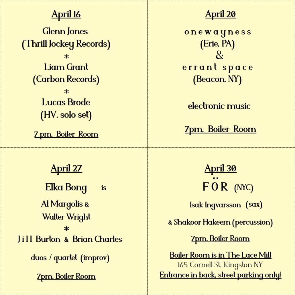 Frequent collaborator at Deep Listening Space (formerly located in Kingston), and well known in the DIY tape underground going back to the 80’s, Margolis is a welcomed regular here at Lace Mill. He is coming from Chester, and will be doing double duties, making a trio with Burton and Charles to end the evening.