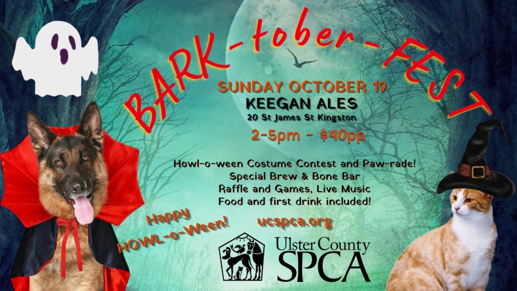 Join us for Bark-tober Fest at Keegan Ales on Sunday, October 19th, from 2pm to 5pm to celebrate Bear’s birthday! Includes a pet costume contest and paw-rade, bone bar for dogs, raffle and games, live music and special brew! Food and first drink included! $40 per person. Tickets available on our website at www.ucspca.org and in-person at the event.