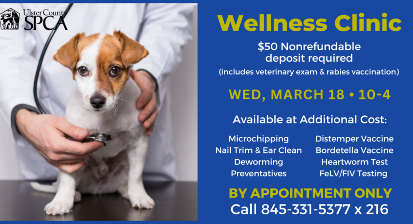 By appointment only, $50 non-refundable deposit required, and includes the exam and rabies vaccine. Additional services can be purchased at an additional cost: distemper vaccine, [...]