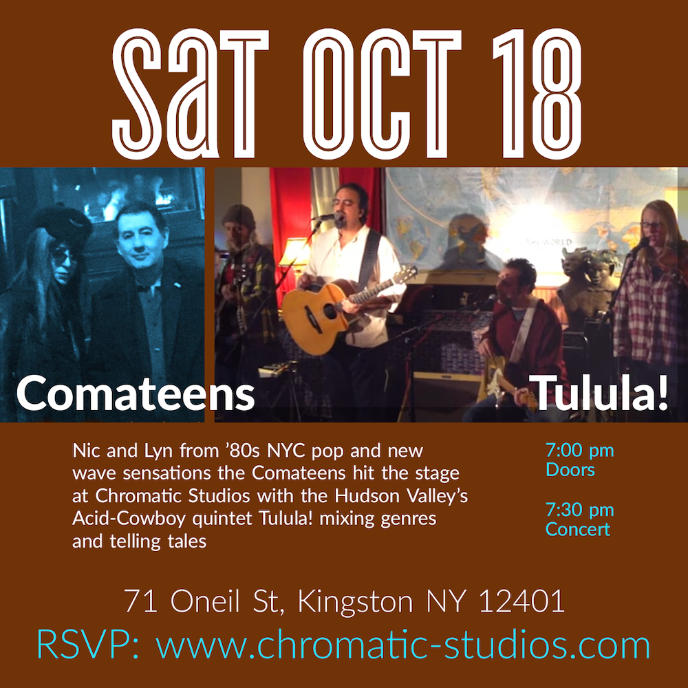 Disbanding upon the untimely and tragic death of guitarist Oliver North, Nicholas West and Lyn Byrd continued recording as a duo, releasing the album West & Byrd in 1988, and are currently working on new material and performing in NY. Tricatel Records re-released a three album Comateens deluxe set in 2019. Lyn and Nic will be performing as a duo in this show at Chromatic Studios.
