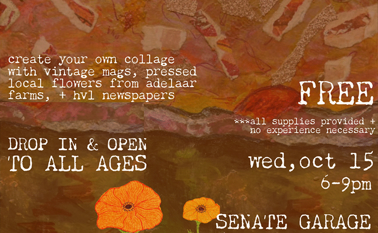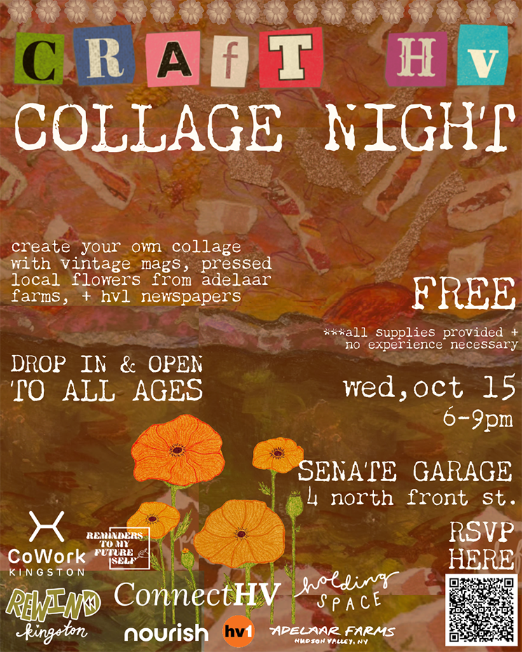 Come to the second-ever Craft HV, a collaboration between ConnectHV, Rewind Kingston, and CoWork Kingston! Create your own collage with vintage maps, pressed local flowers from Adelaar Farms, and HV1 newspapers.