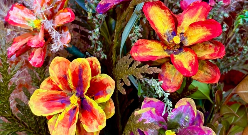In this workshop we’ll create fantastic arrangement featuring flowers made from pine cones! Enhance their natural beauty with a delicate wash of color or use your imagination to paint a blossom never seen before! Tucked in a delicate glass bud vase with evergreens and grasses they’ll make a beautiful and long lasting accent for your home.