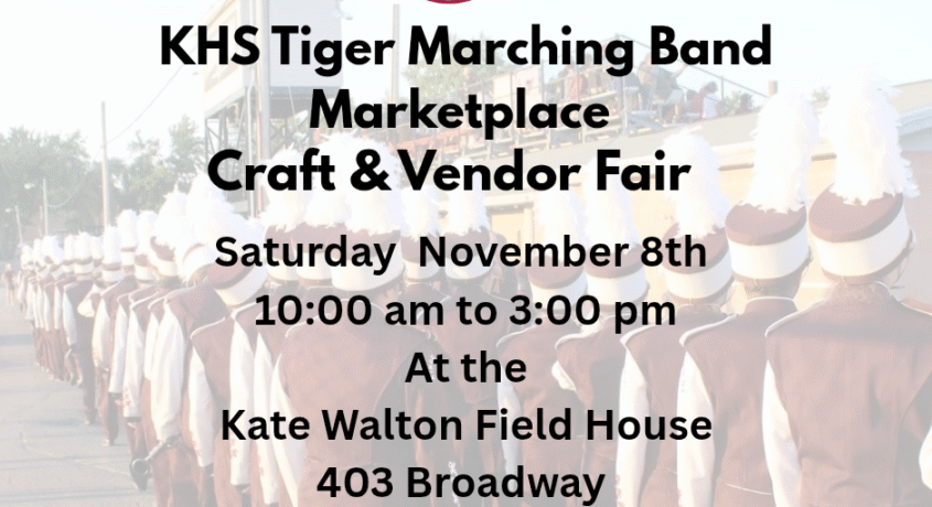 ✨ Join us for the Marketplace Craft & Vendor Fair supporting the KHS Tiger Marching Band at the Kate Walton Field House