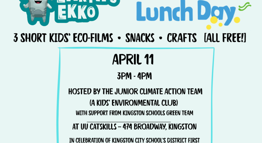 In celebration of Kingston school district’s first “plastic free lunch day” coming on Earth Day, the Junior Climate Action Team and Kingston School’s Green Team presents short environmental videos on plastic pollution. Free from 3-4 pm with snacks and crafts.