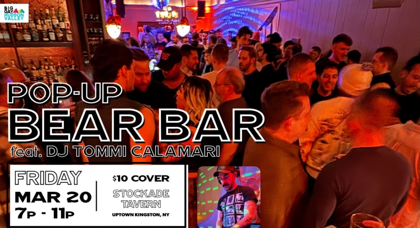 Join Big Gay Hudson Valley for a very special Pop-Up Bear Bar on Friday night, March 20th at the Stockade Tavern in Kingston – complete with beats served by the Hudson Valley’s very-own DJ Tommi Calamari!