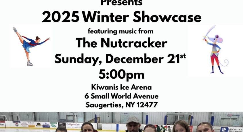 The Skating Club of Saugerties is excited to present a skating exhibition on Sunday, December 21st at 5pm. The Winter Showcase features soloists, duets, and groups for our learn to skate classes. The show will feature music from The Nutcracker! Join us to celebrate the hard work of our skaters!!